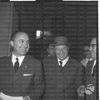 Scalfaro e Scelba ripresi mentre si intrattengono con alcuni colleghi in prossimità della sala dell'EUR, in occasione del Consiglio Nazionale della D.C.